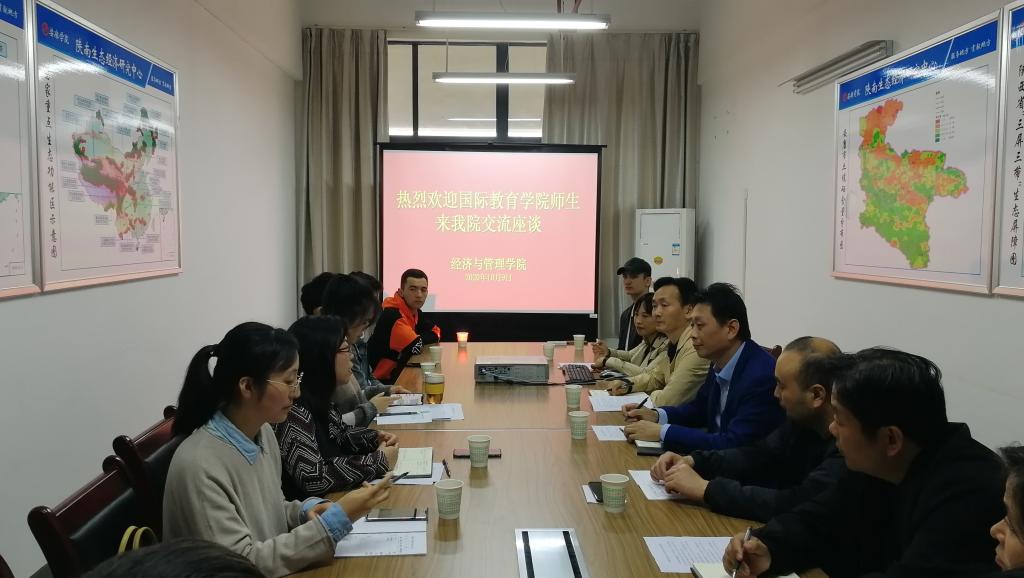 在经济与管理学院,院长李勇教授介绍了经管学院的办学历史和专业设置。党总支书记李成仙表示,将引导来华留学生参加健康有益的课外活动,促进其和中国学生的交流。双方就目前来华留学生专业学习和日常管理中的问题交换了意见。随后,副院长李伟杰带领国际教育学院师生参观了经管学院实验教学中心和陕南生态经济研究中心。