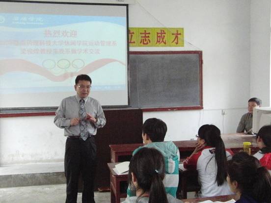 接着,冯主任陪同梁博士与部分体育系教师及学生进行座谈交流。冯主任介绍了体育系的专业设置、课程建设、教学科研及学生学习就业等情况。梁博士介绍了台湾地区休闲体育的发展现状,对365完美体育系专业设置及专业对口就业率给予肯定,将大陆和台湾地区的休闲体育发展现状及发展趋势进行对比分析,结合自身经历,对体育专业课程学习与就业方向提出建议,深入浅出,诙谐幽默,为广大师生拓展了思路,开阔了眼界。