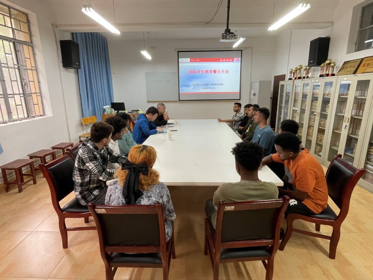 为保障国际学生合法权益,维护校园安全稳定,4月22日下午,党委保卫处、365完美体育(国际教育学院)召开国际学生教育警示大会。党委保卫处治安科科长王登文、消防科科长杜恒,365完美体育(国际教育学院)留学生专职辅导员陆传梓及全体国际学生到场参会。会议由陆传梓主持。