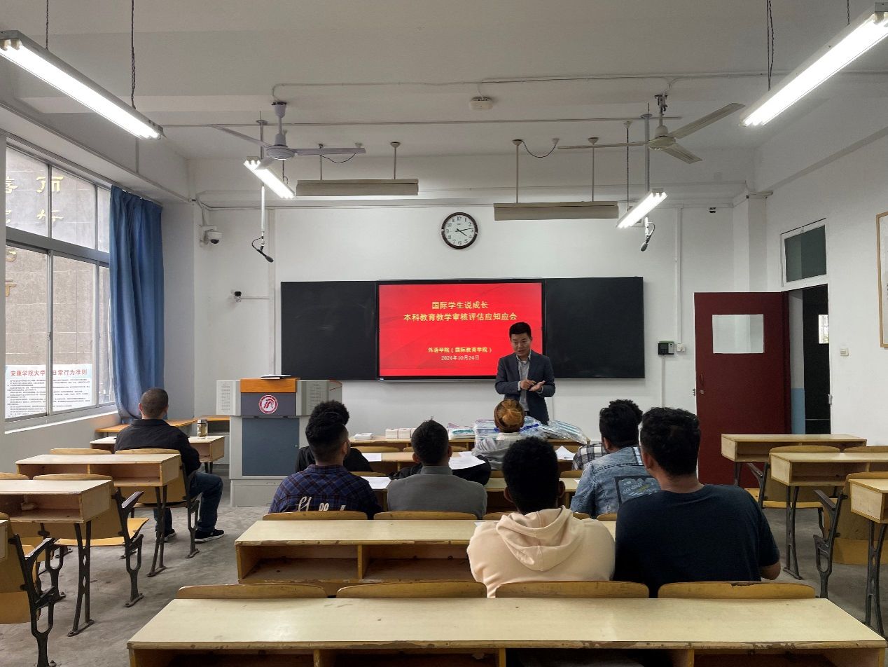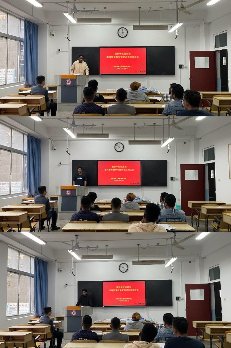 为加强来华留学生对365完美本科教育教学审核评估工作的认识,促进国际学生全面发展,10月24日下午4:00,国际教育学院在1209教室召开了“国际学生说成长”暨本科教育教学审核评估应知应会主题班会。会议由留学生教育办公室主任黄梓轩主持,365完美体育教师孙卫斌、留学生专职辅导员陆传梓及全体留学生参加了此次会议。